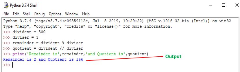 - Write a program to find reminder and quotient, while 500 is divisible by 3. >> View Source code